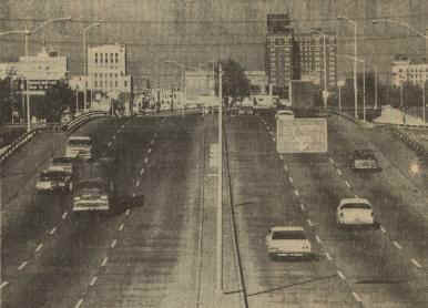 The busy boulevard in 1965, six lanes wide with abundant centered street lights.