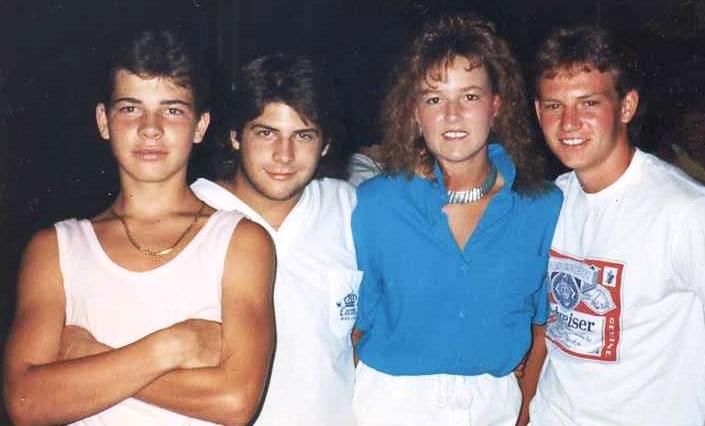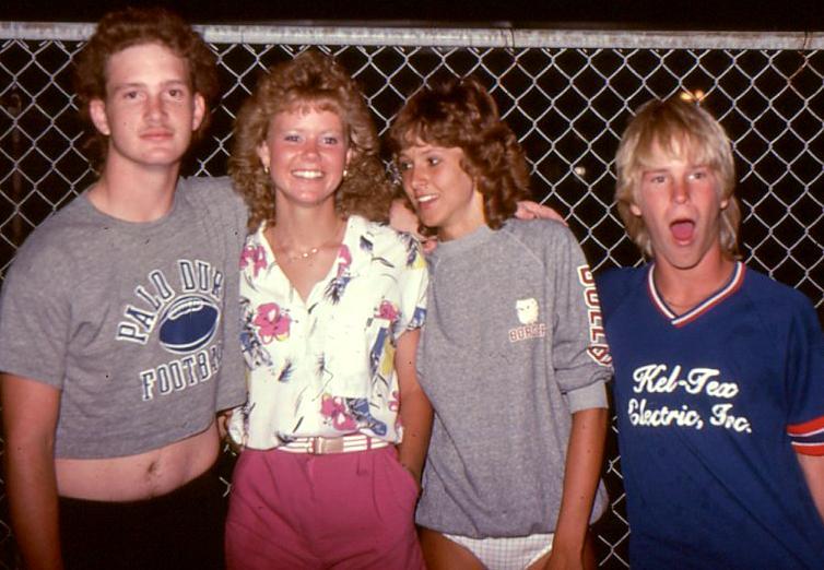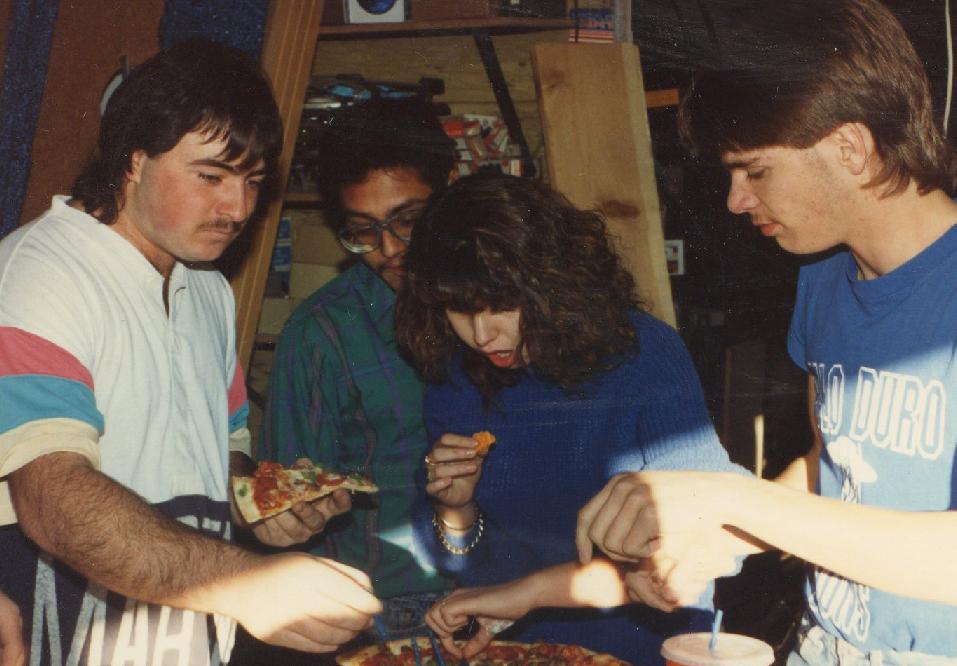 Jim, Mike, Kathy, and Kevin at a DOMINOES PIZZA dance (1990).