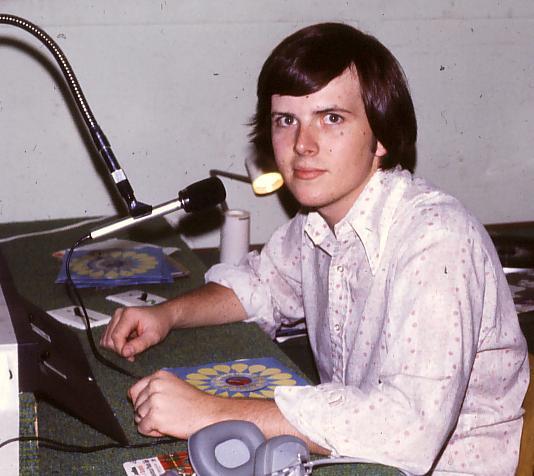KPUR radio DJ, Jay Evans, does a dance in Claude (August 9, 1975).